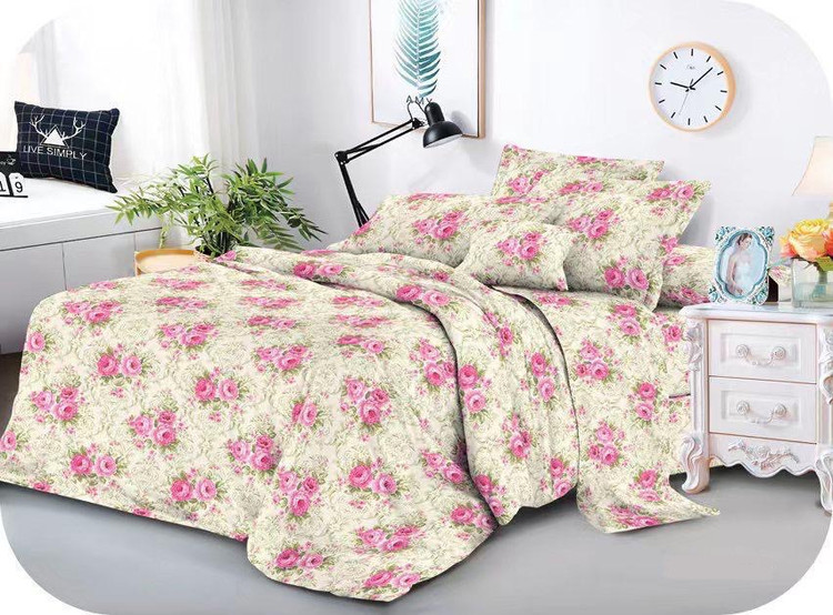 سرویس روتختی گل صورتی زمینه کرم